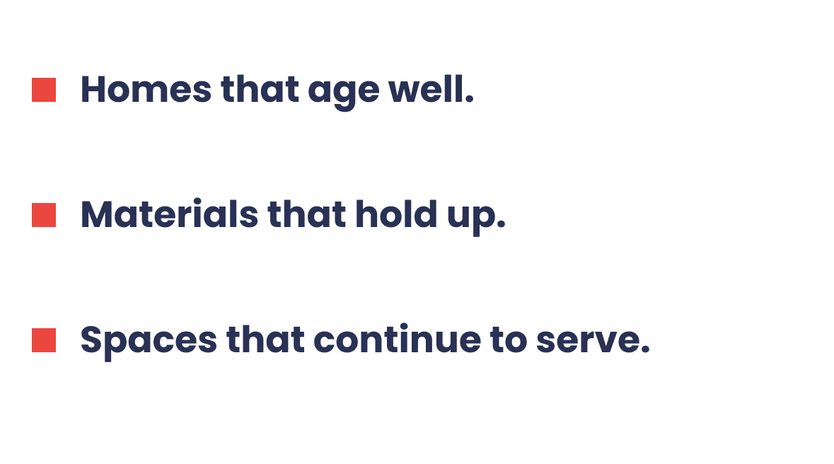 We use honest, commercial-grade materials built for multi-generational longevity. Our approach ensures industrial-scale durability meets refined residential finish standards.